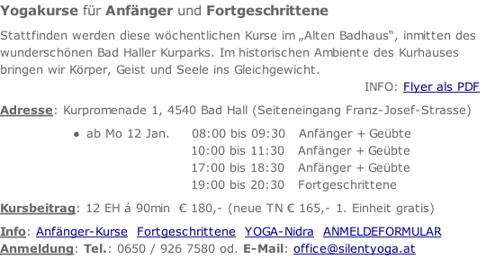 © 2012 • Petra Stadlmayr • SilentYoga • Wohnparkstraße 45, 4641 Steinhaus bei Wels • +43 650 926 7580
